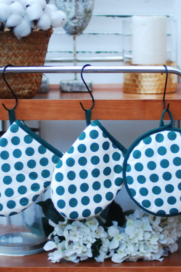 Thermal Guard Combo, Blue Dots – Oven gloves/Heat insulation pad