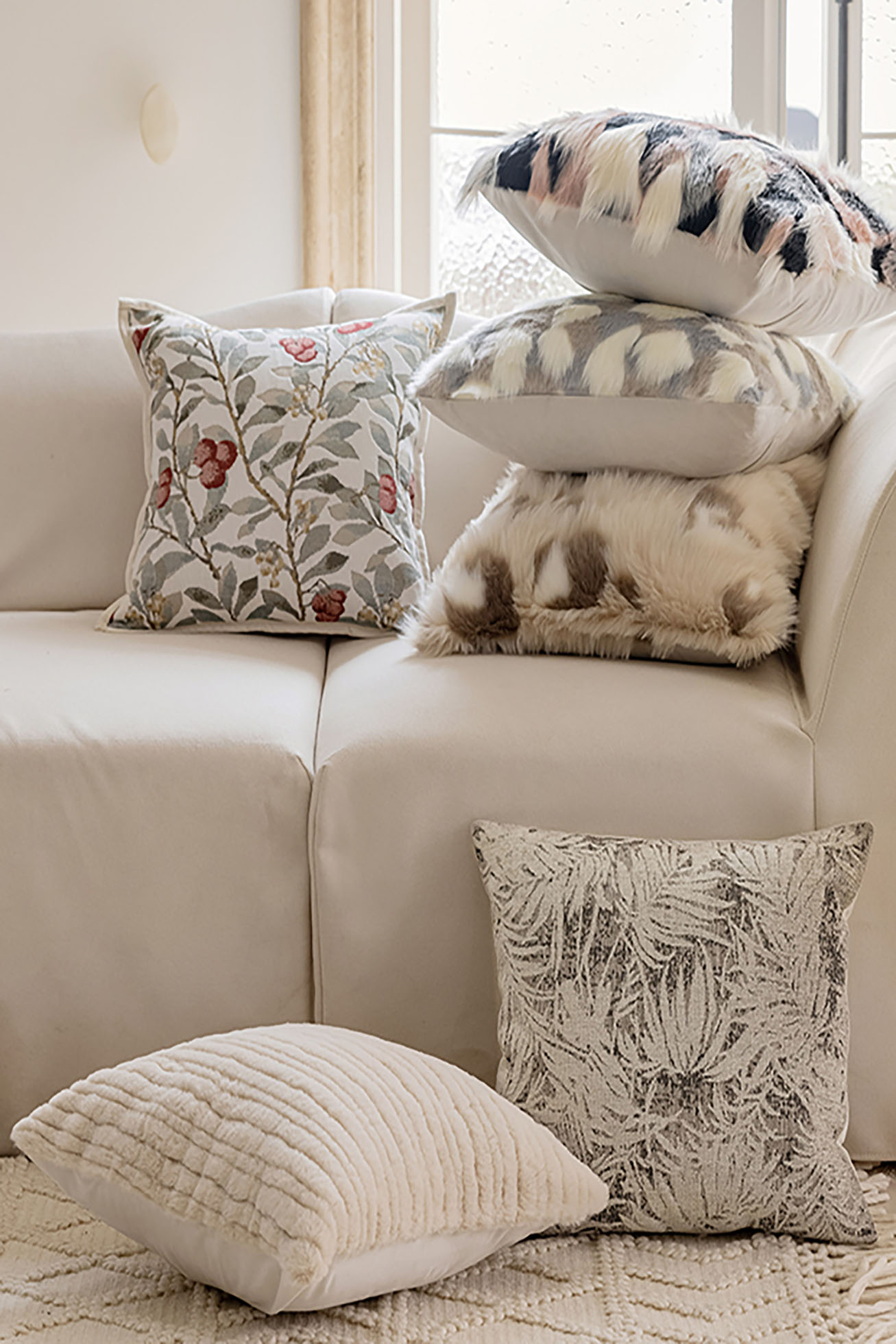 Bring the calming beauty of nature into your home with this botanical embroidered cushion. The fresh green leaves stand out against a soft neutral base, creating a look that is both elegant and soothing. Perfect for window seats, sofas, or bedrooms, it adds a touch of serenity to any space.