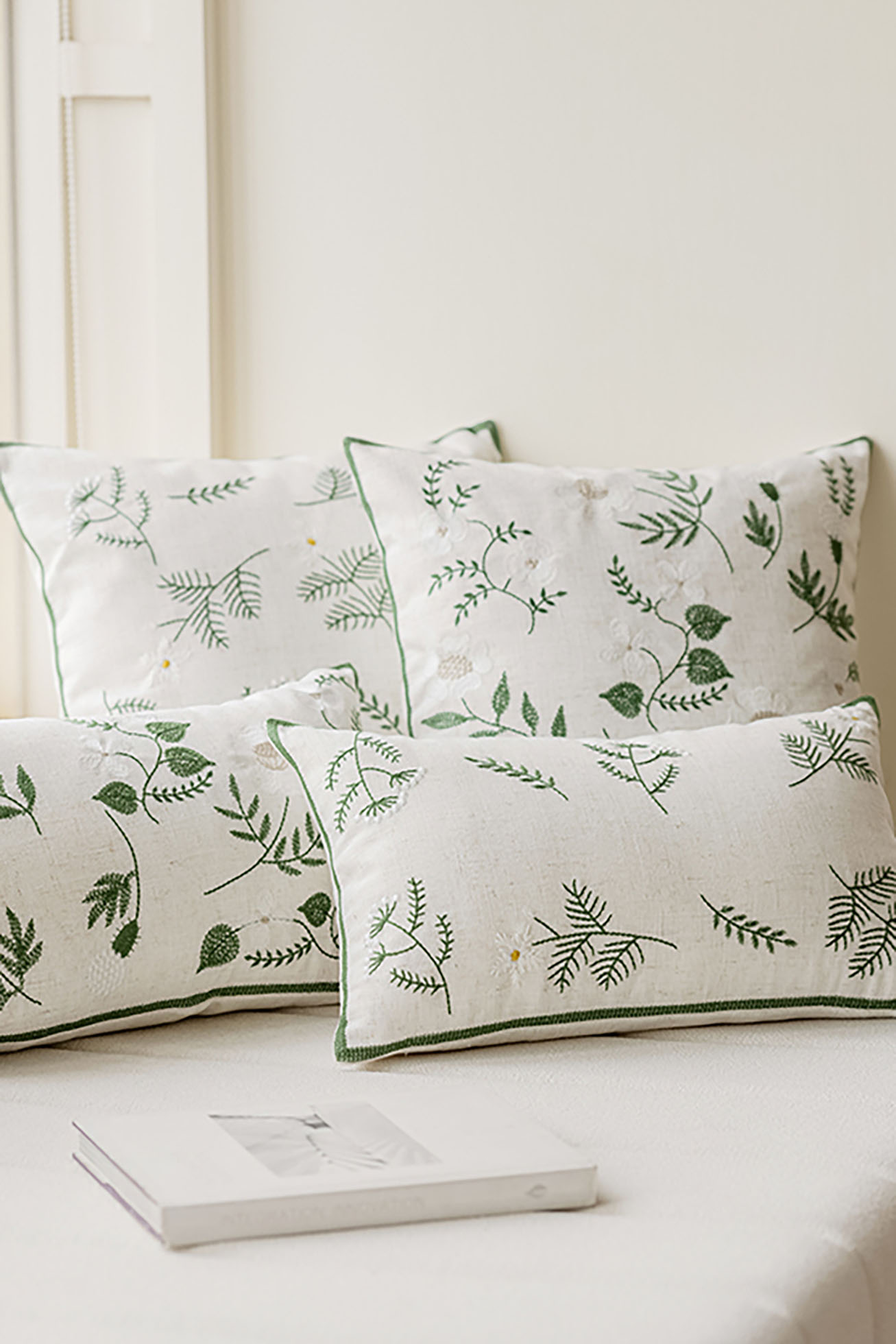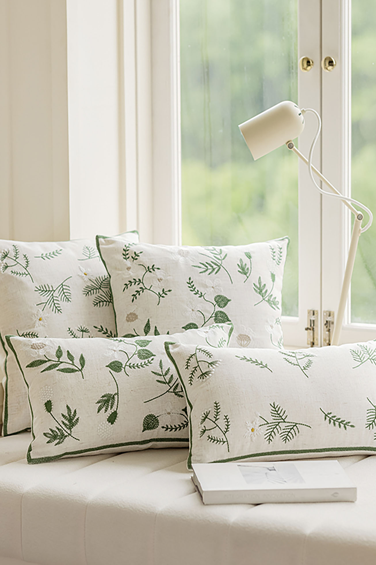 The design was inspired by morning walks through quiet gardens, where ferns and wild plants gently sway in the breeze. Each motif reflects the harmony found in nature’s smallest details. This cushion was created to capture that peaceful moment and share it within your everyday living.
