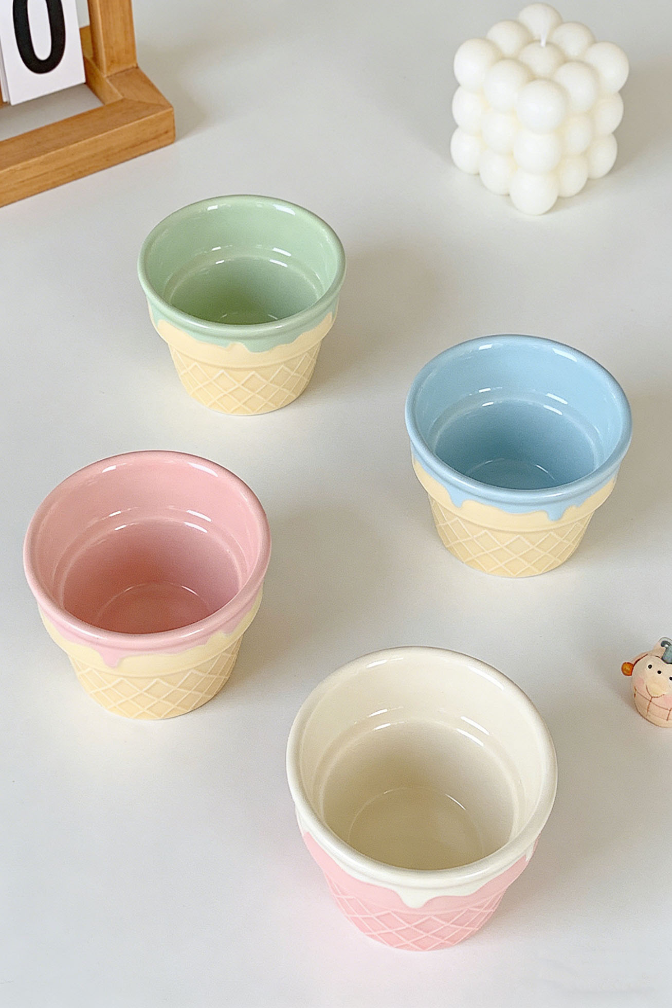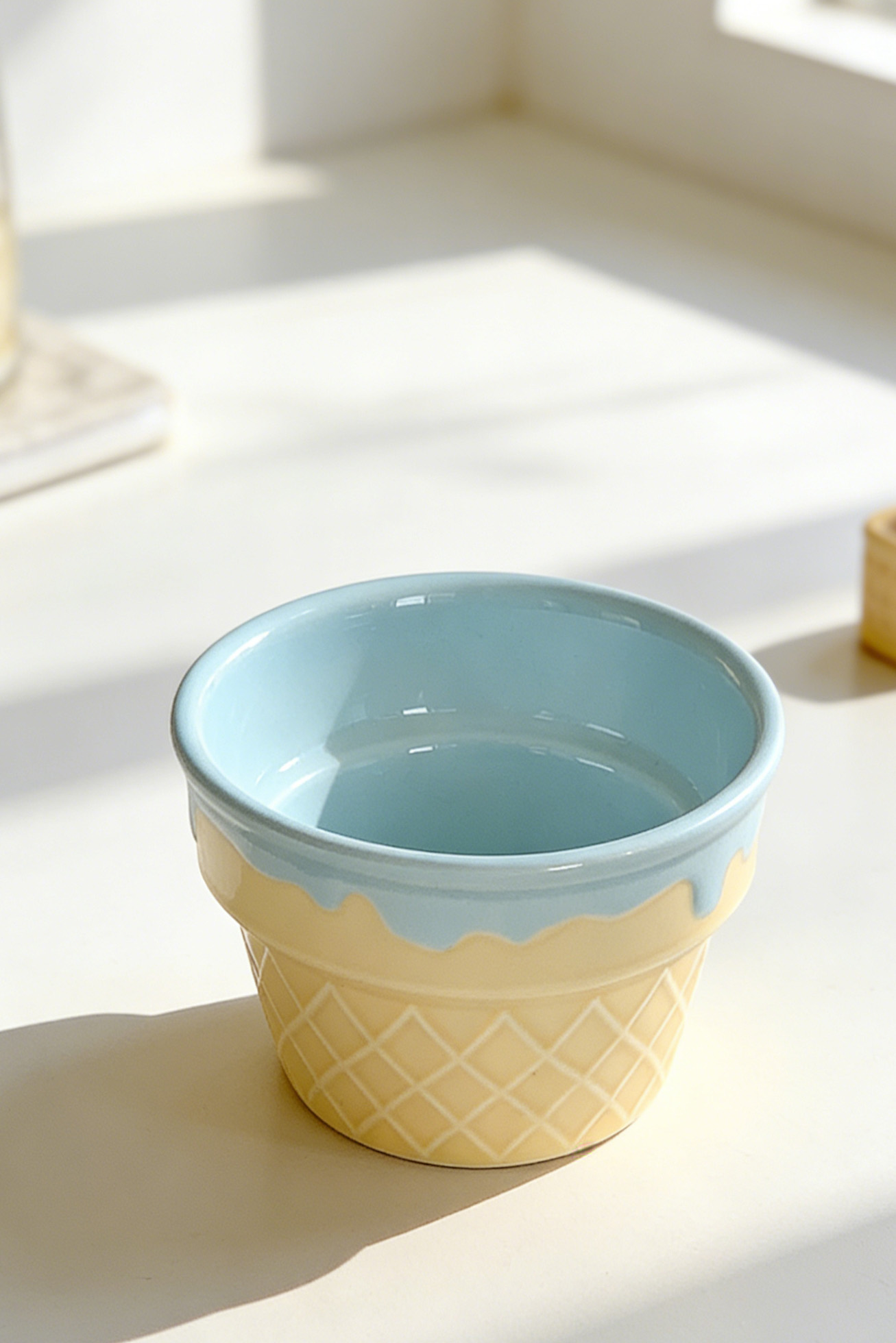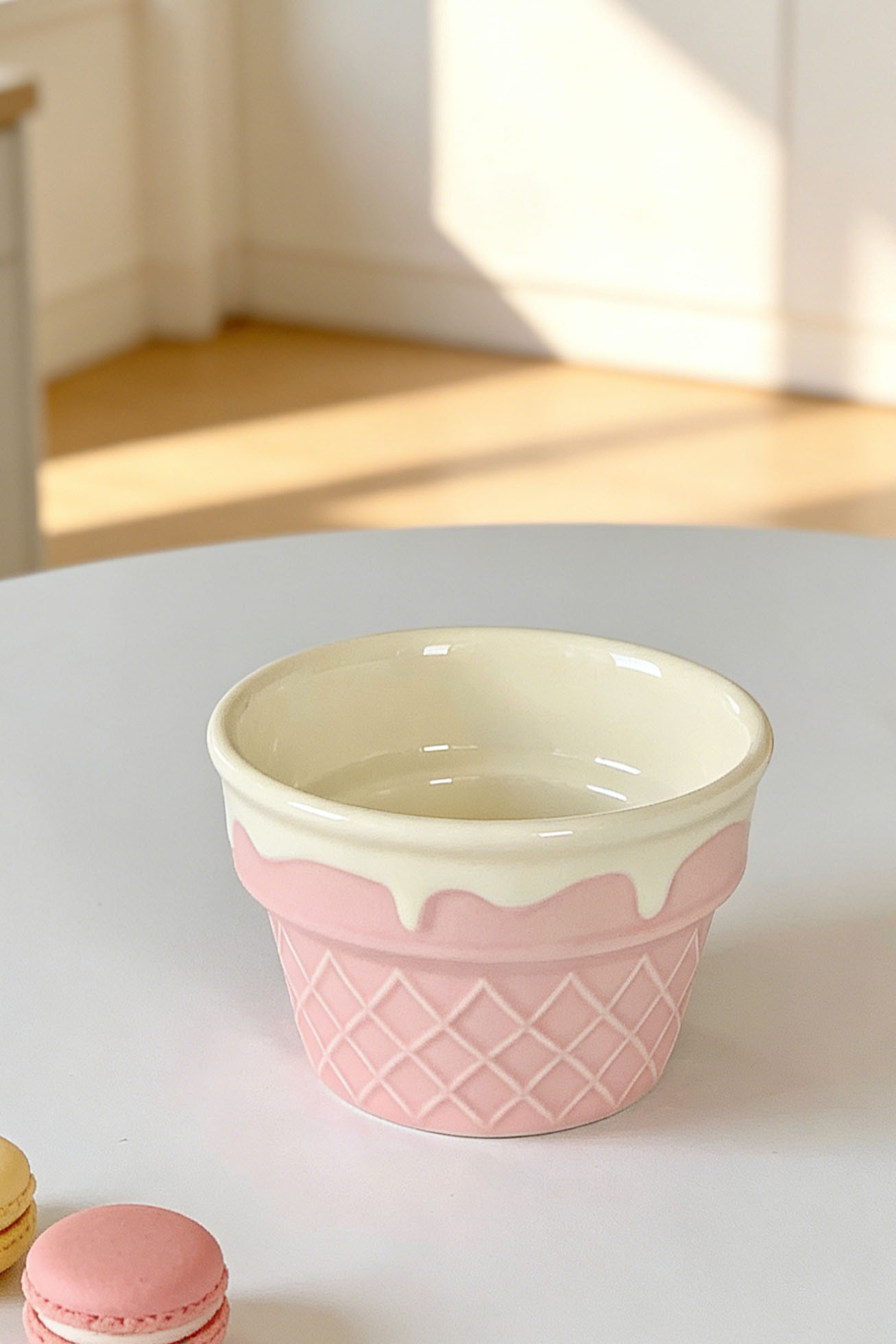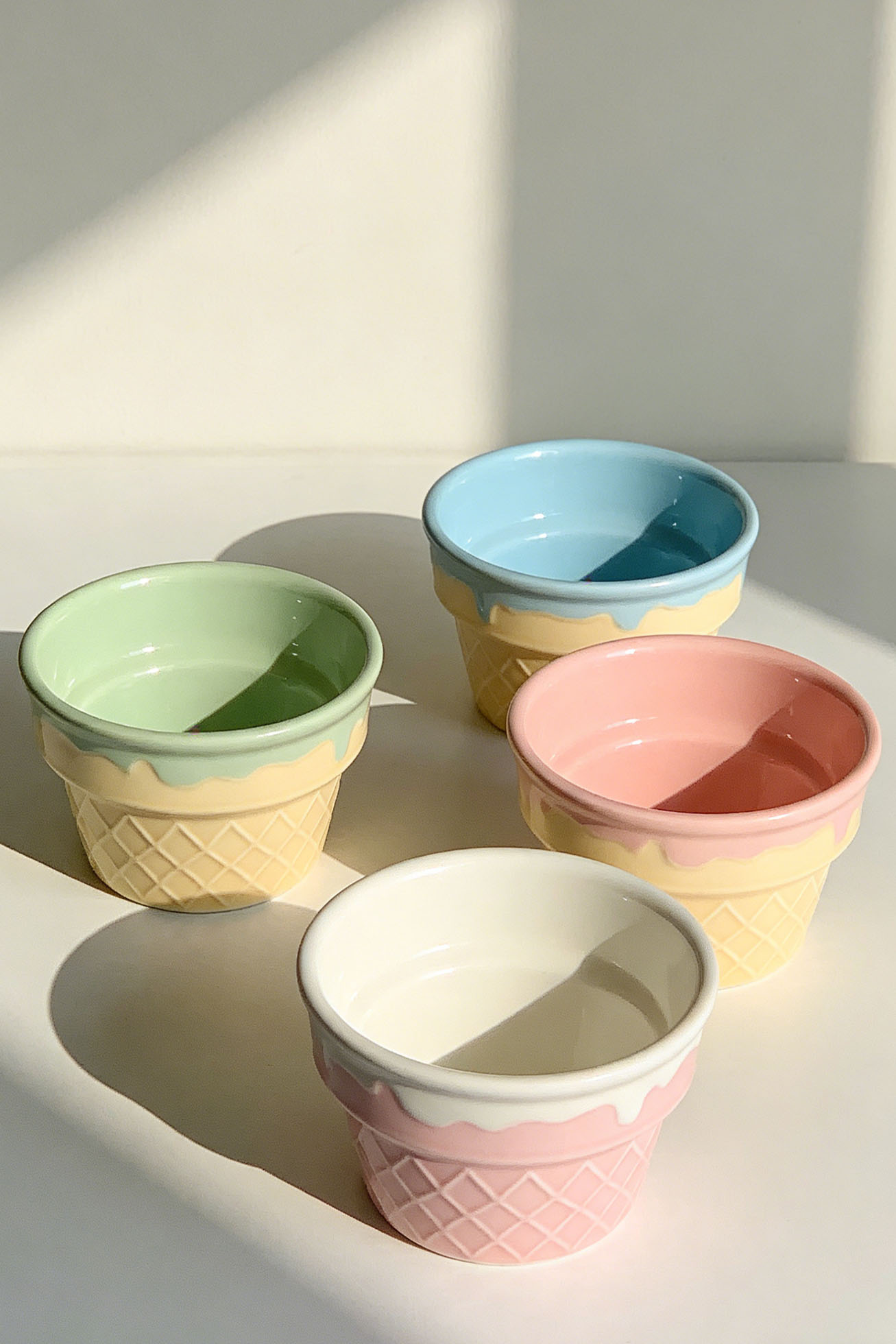 Inspired by the shape of a classic ice cream cone, these little bowls bring a playful and comforting feeling to everyday moments — whether it’s a scoop of ice cream, a bowl of yogurt, or fresh fruit on a sunny afternoon. With soft pastel colours and a textured cone pattern, they feel both nostalgic and fresh.