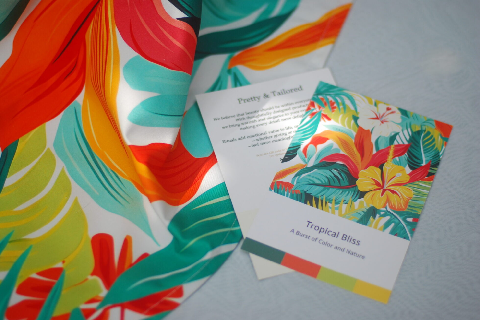 Much like a tropical getaway, these vivid patterns invite you to bask in the beauty of nature’s boldness. Whether it reminds you of sun-soaked beaches, exotic gardens, or a carefree summer afternoon, it brings a feeling of relaxation and joy. Let this design transport you to a world of endless summer, where color, energy, and nature come together in perfect harmony.