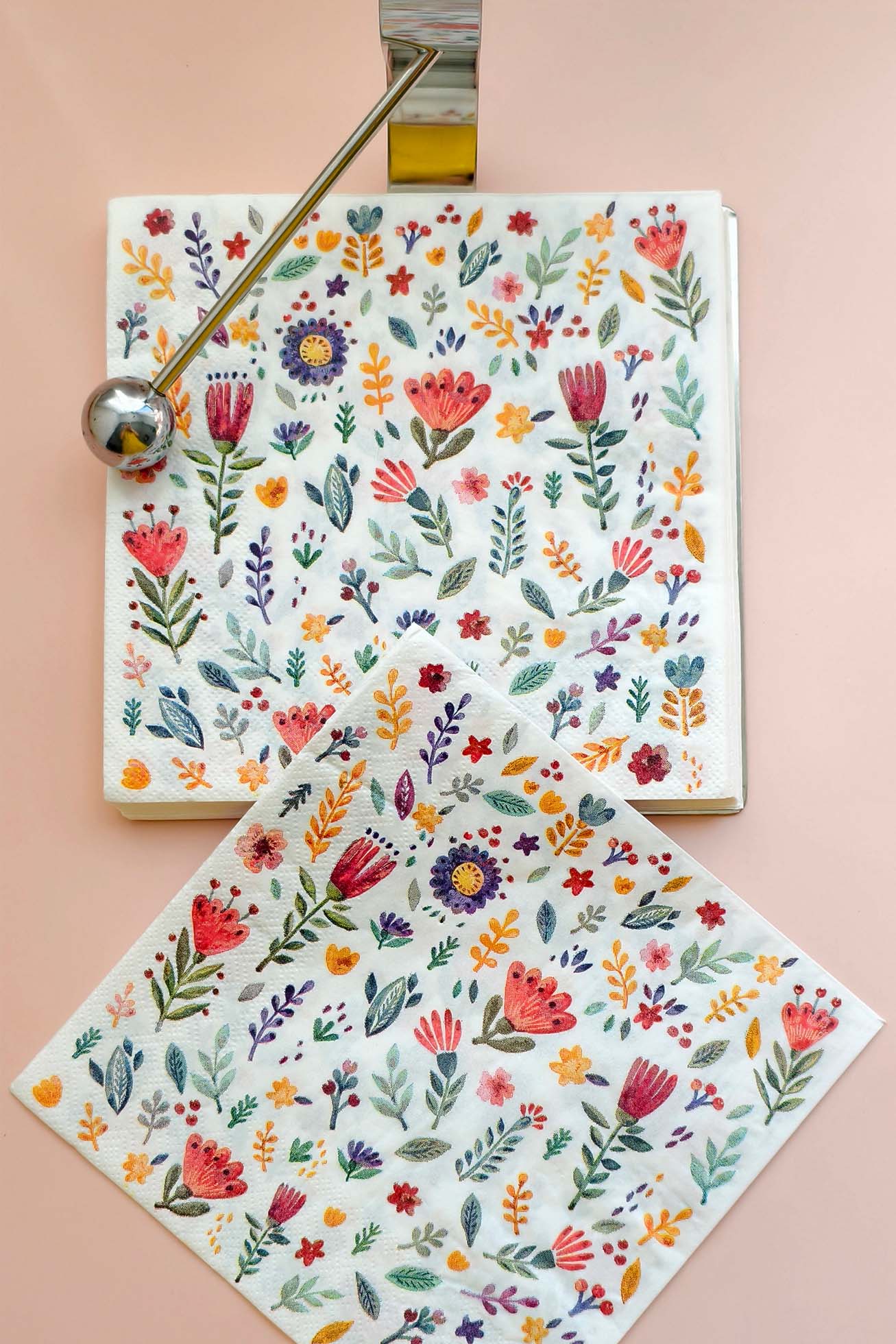 Each pack includes 20 napkins, sized 33 × 33 cm and made with 2-ply soft paper. A creative blend of floral, graphic, and whimsical prints brings a touch of individuality to any occasion. Perfect for those who love eclectic style and want their table to stand out.