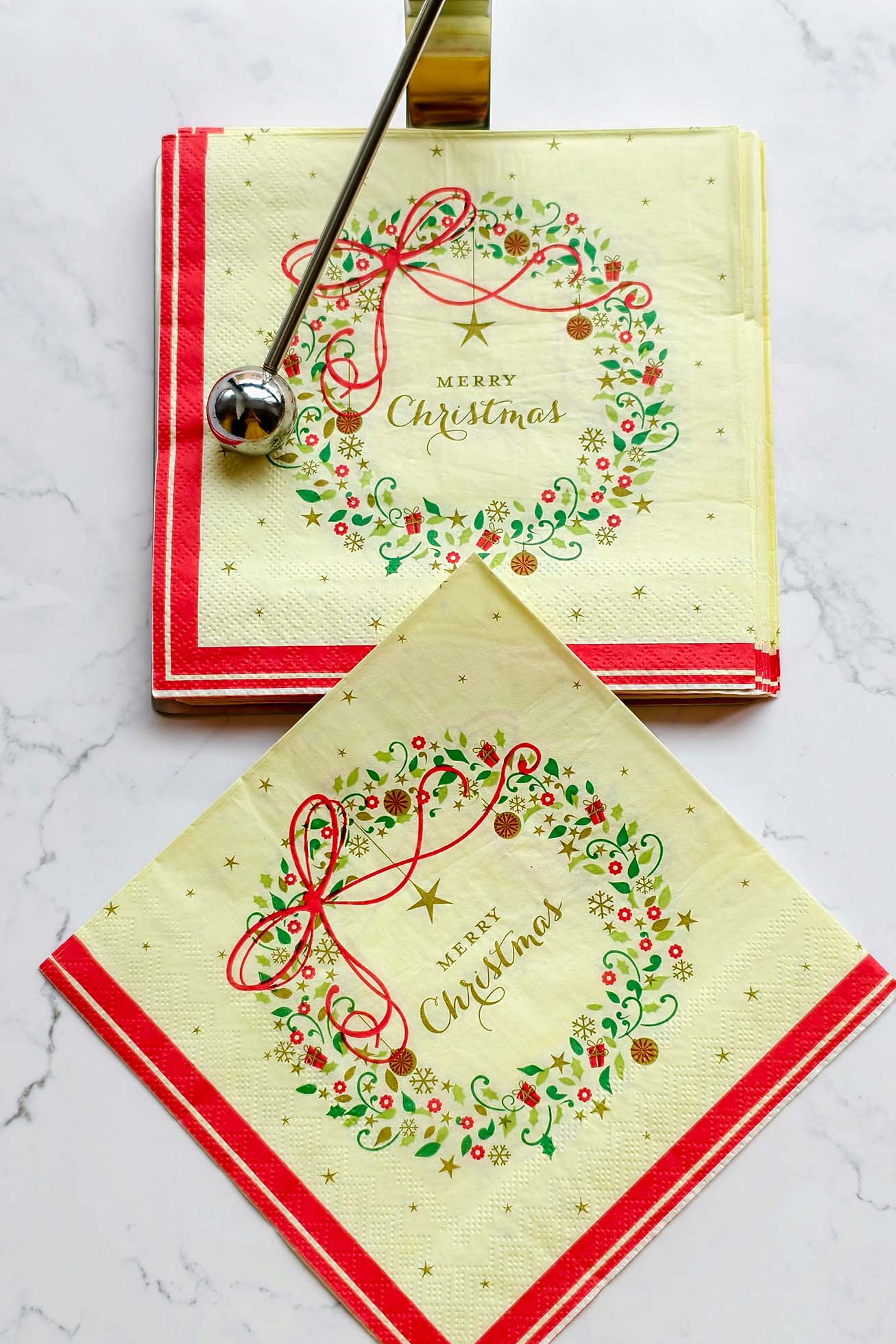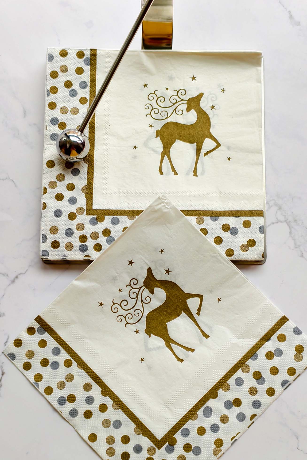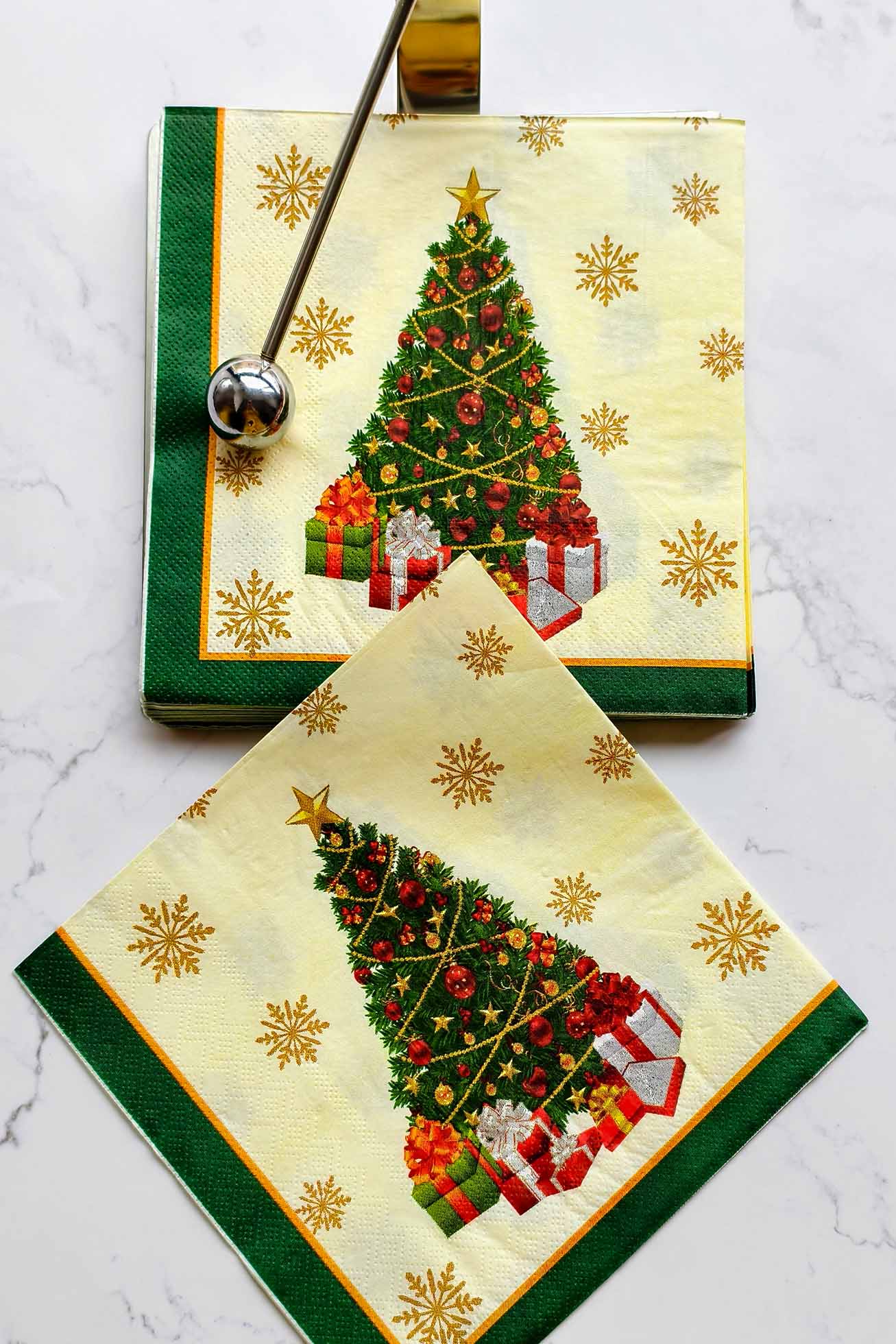 Each pack includes 20 napkins, sized 33 × 33 cm and made with 2-ply soft paper. Symmetrical Christmas motifs with wreaths, poinsettias, and festive trees create a balanced holiday look. Perfect for elevating your Christmas table setting.