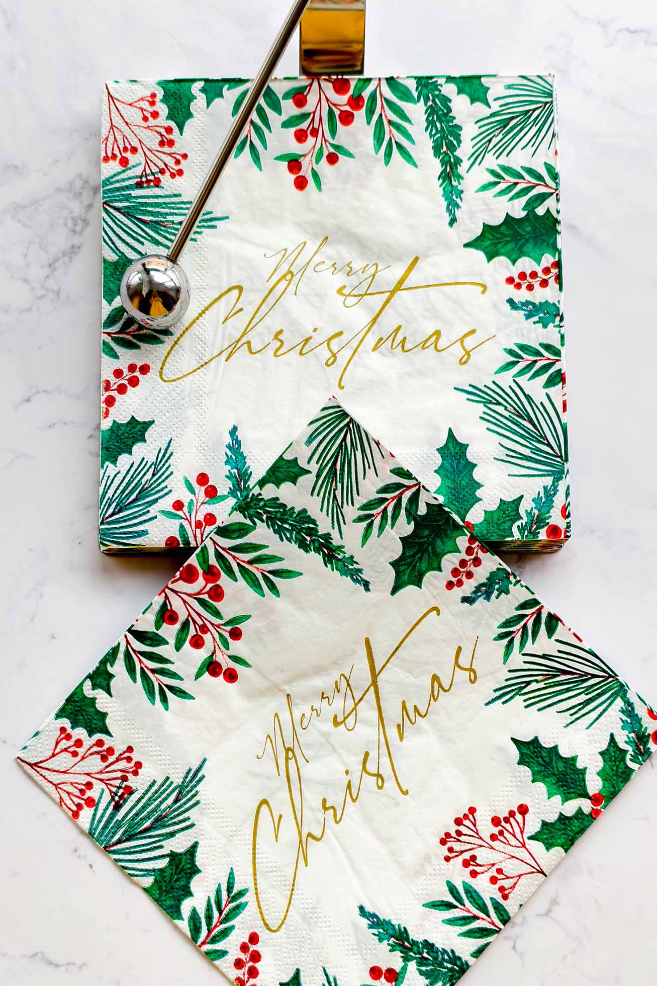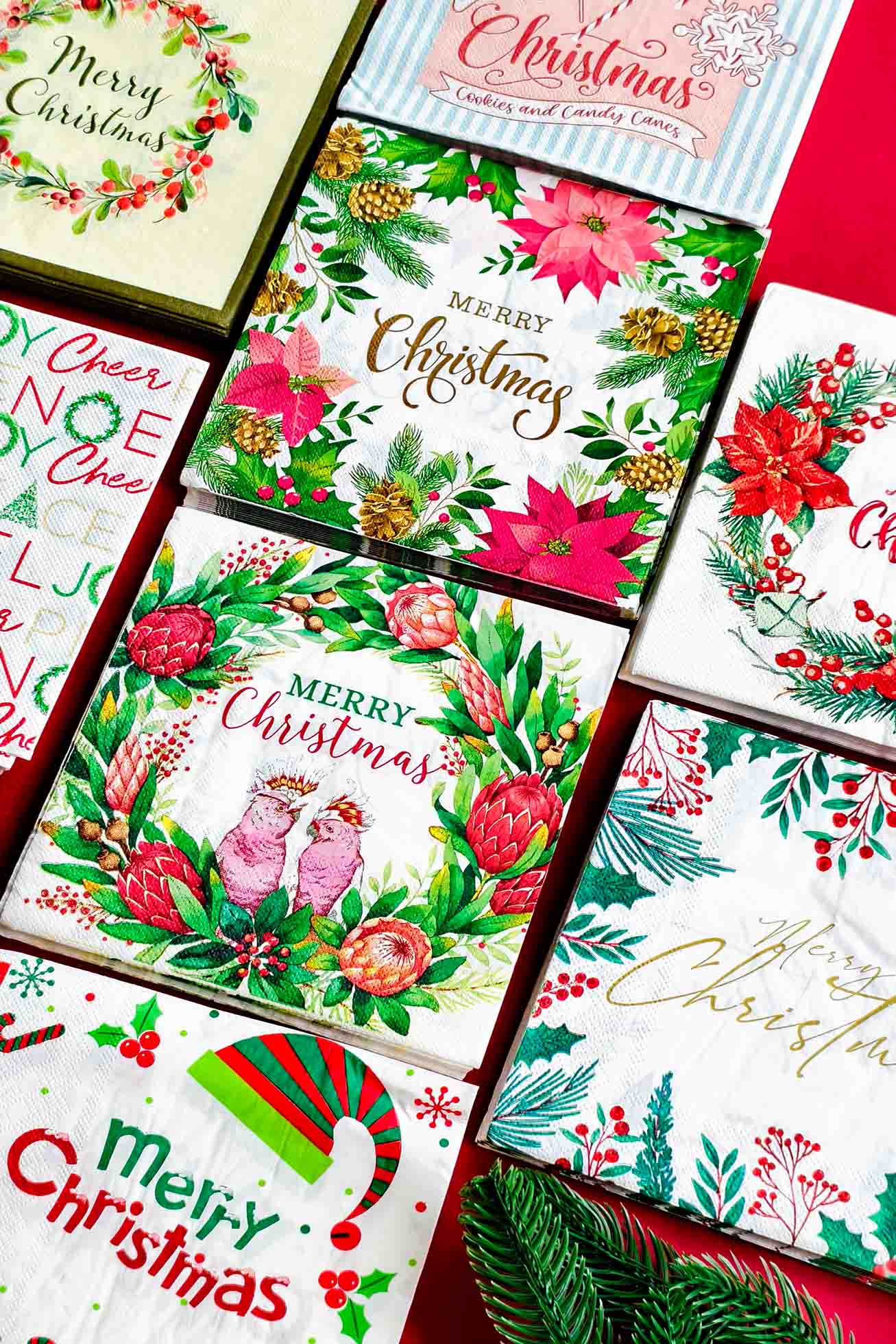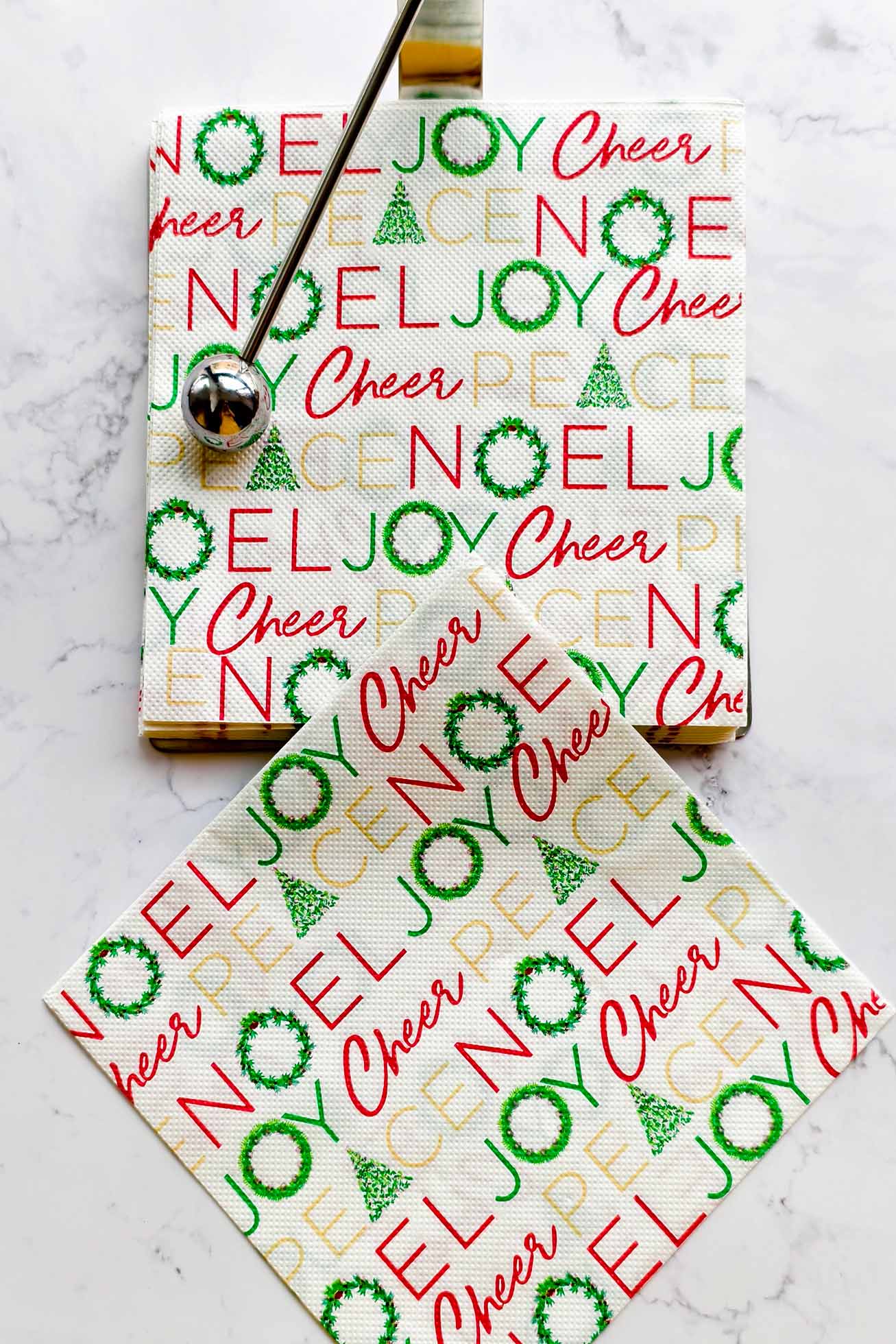 Each pack includes 20 napkins, sized 33 × 33 cm and made with 2-ply soft paper. Festive greetings like “Merry Christmas” and “Noel, Joy, Peace” shine with holiday charm. Perfect for Christmas feasts, family gatherings, and joyful celebrations.
