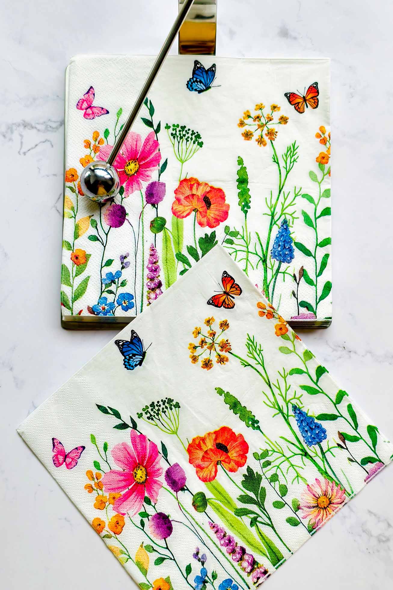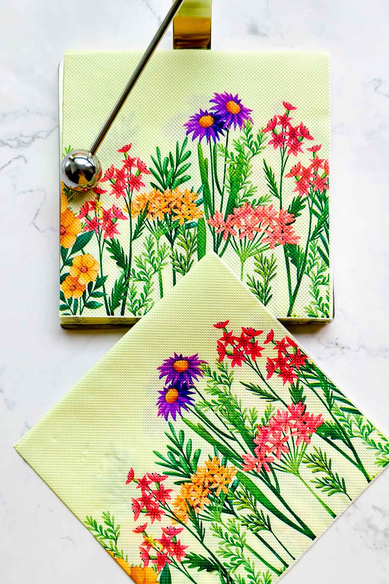Each pack includes 20 napkins, sized 33 × 33 cm and made with 2-ply soft paper. Colorful wildflowers stretch upward as if growing freely in a meadow. A refreshing choice for picnics, garden parties, or everyday dining.