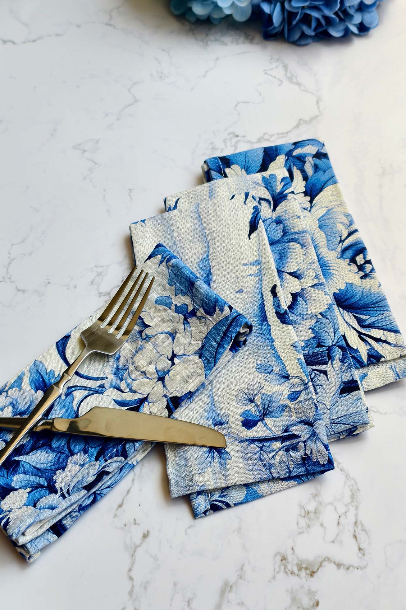 Spring unfolds in delicate whispers, carried by blooming flowers and soft breezes. The “Whisper of Spring Napkin” captures this moment with intricate blue and white patterns, blending the grace of nature with timeless design traditions.